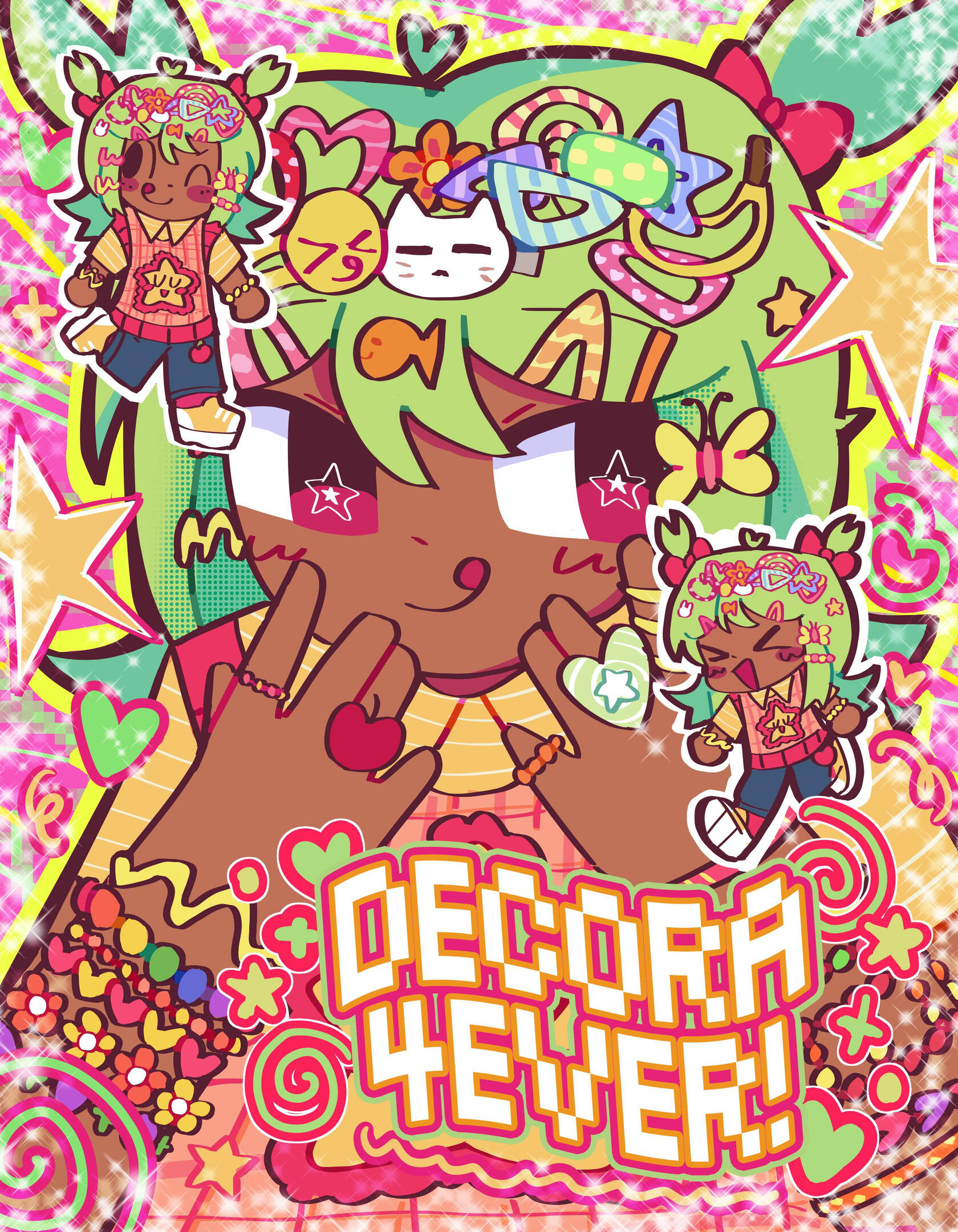 RAINBOWWORMSOUP is a filipino-american illustrator who also goes by Izzy. She has been posting her illustrations online as early as 2011 (any trace of it obliterated cause it was on disney create (rip)), but has began taking illustration seriously in 2016. Her inspiration comes from various media she enjoys, j-fashion, and internet culture.Izzy has been running her online store since 2023, and has since created a wide variety of products, ranging from stickers to accessories you can wear!